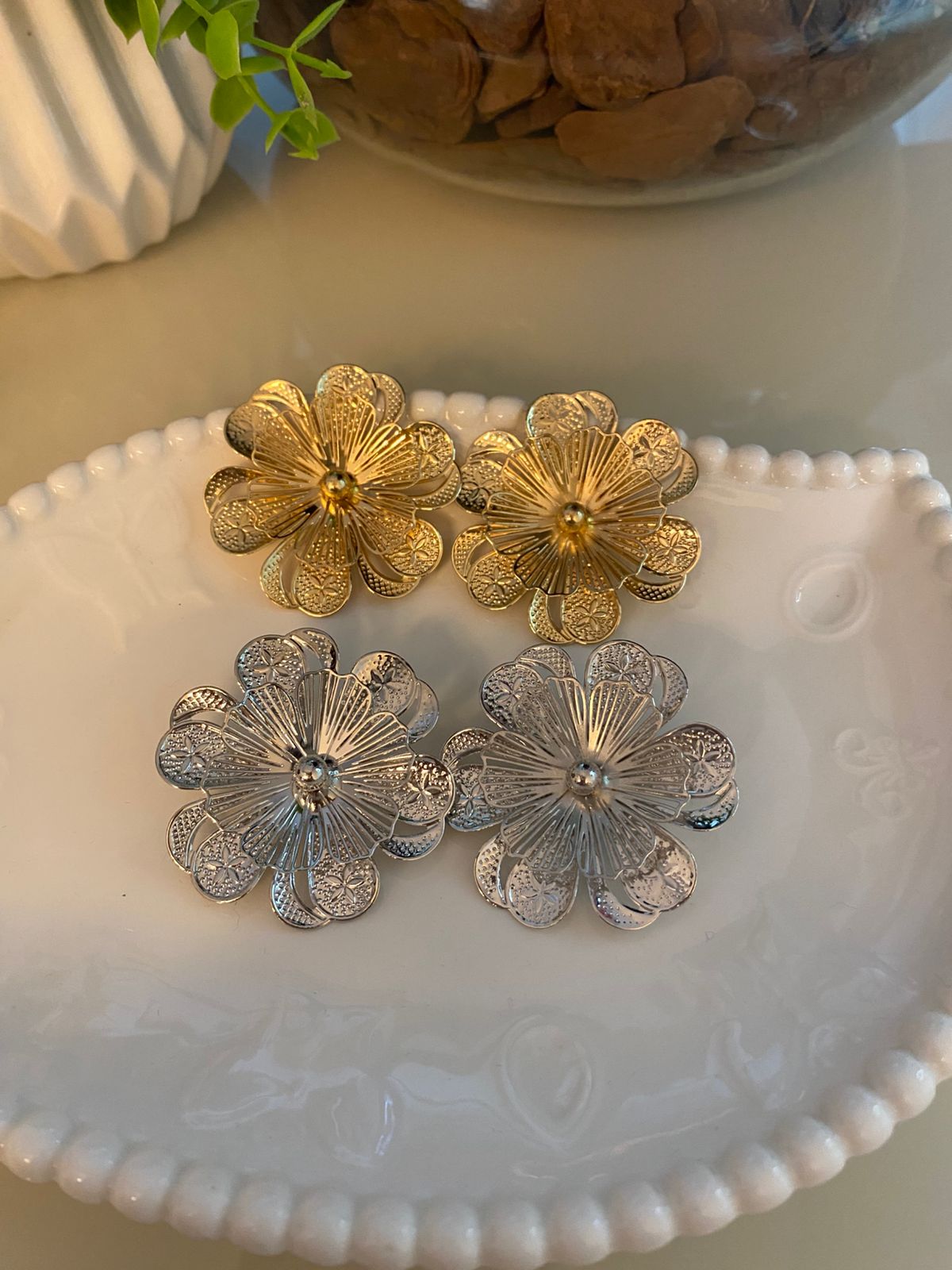 O Brinco Flor Metal é a aposta perfeita para quem quer acompanhar as tendências sem abrir mão da elegância.